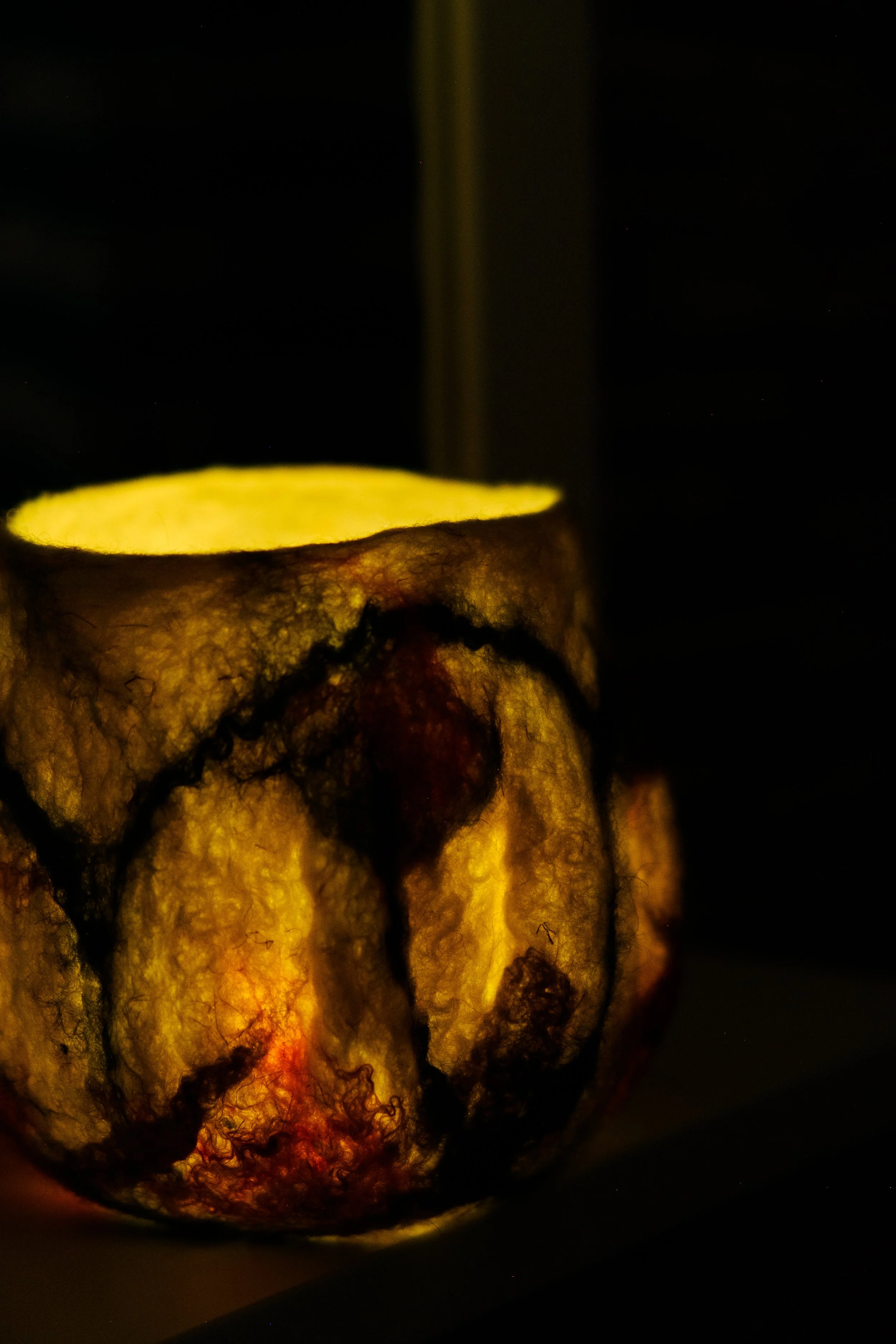 My work centres around the ancient craft of wet felting - a process that transforms raw wool fibres into richly textured, durable and expressive forms. Each piece I create is shaped by hand using water, soap, and motion, allowing the wool to shrink and bind into a solid fabric. The result is a collection of one-of-a-kind objects that blend function, beauty, and tactile warmth.